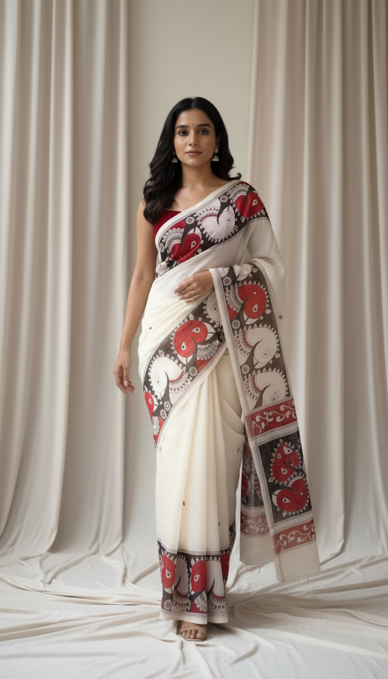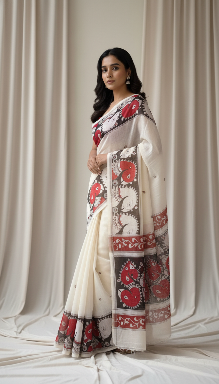 SUTRAANI’s Chanderi Cotton sarees celebrate timeless Indian craftsmanship with a modern sensibility. Crafted from fine Chanderi cotton, this fabric is lightweight, breathable, and subtly lustrous. It drapes effortlessly, offering all-day comfort while maintaining a graceful, polished look. Elegant prints enhance its refined appeal, making it ideal for office wear, daytime occasions, and cultural gatherings. Designed for women who value heritage with modern ease.