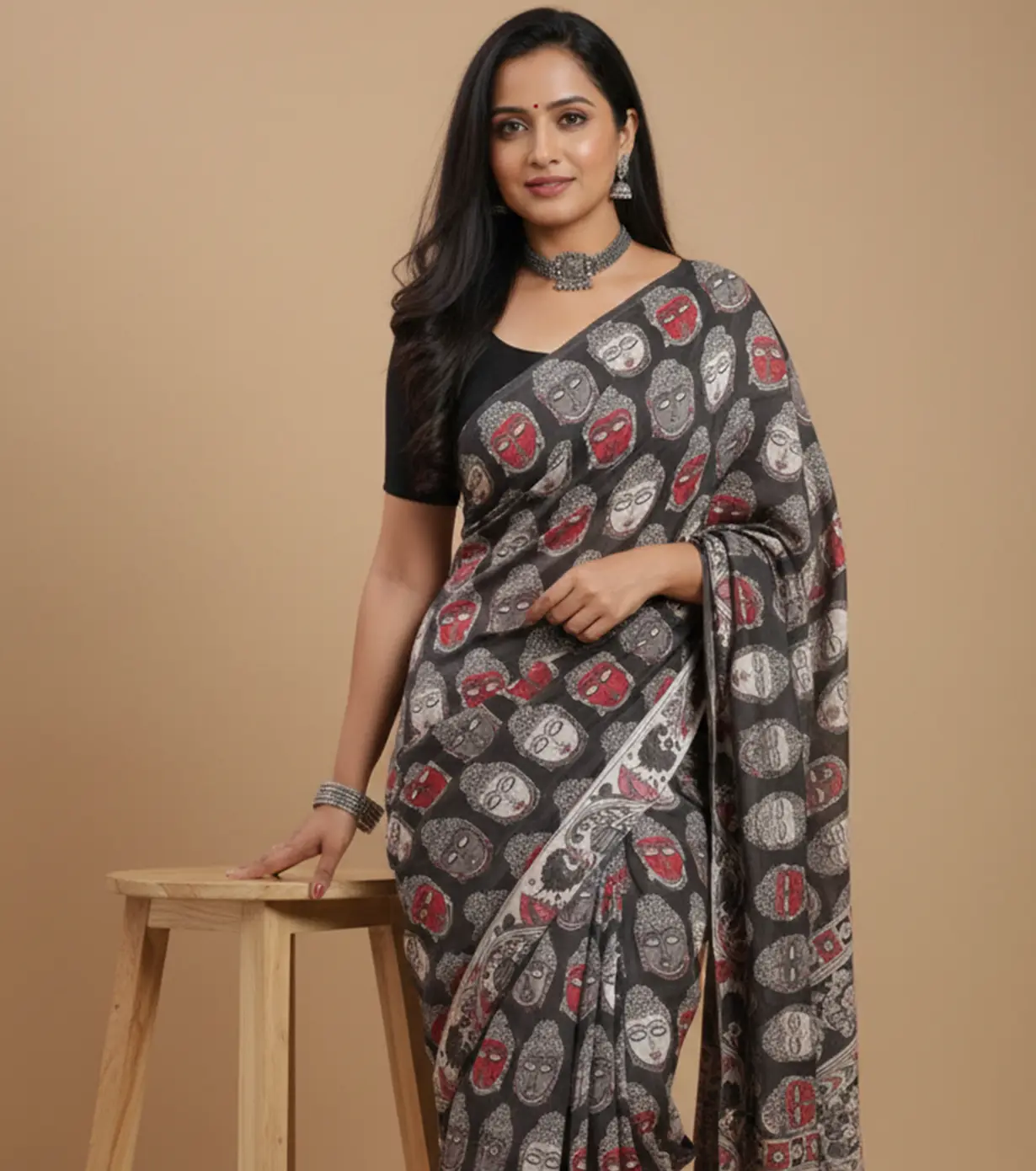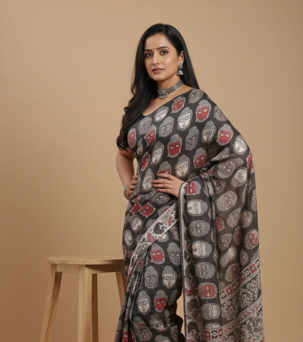 This linen Cotton saree showcases a stylish printed border and heavy digital print, offering breathable comfort with modern flair. Comes with blouse piece in 6.30 m cut and is fully washable.