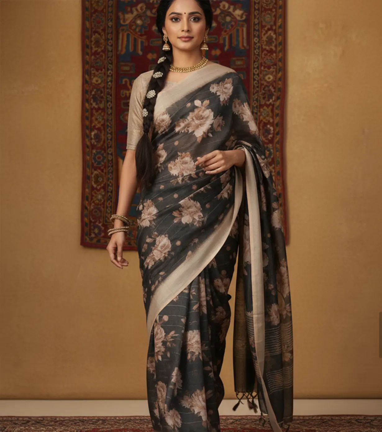 SUTRAANI’s Linen Silver Lining sarees combine airy linen fabric with subtle silver accents. Lightweight and refined, they offer understated shimmer and modern elegance, ideal for office wear and sophisticated casual occasions.