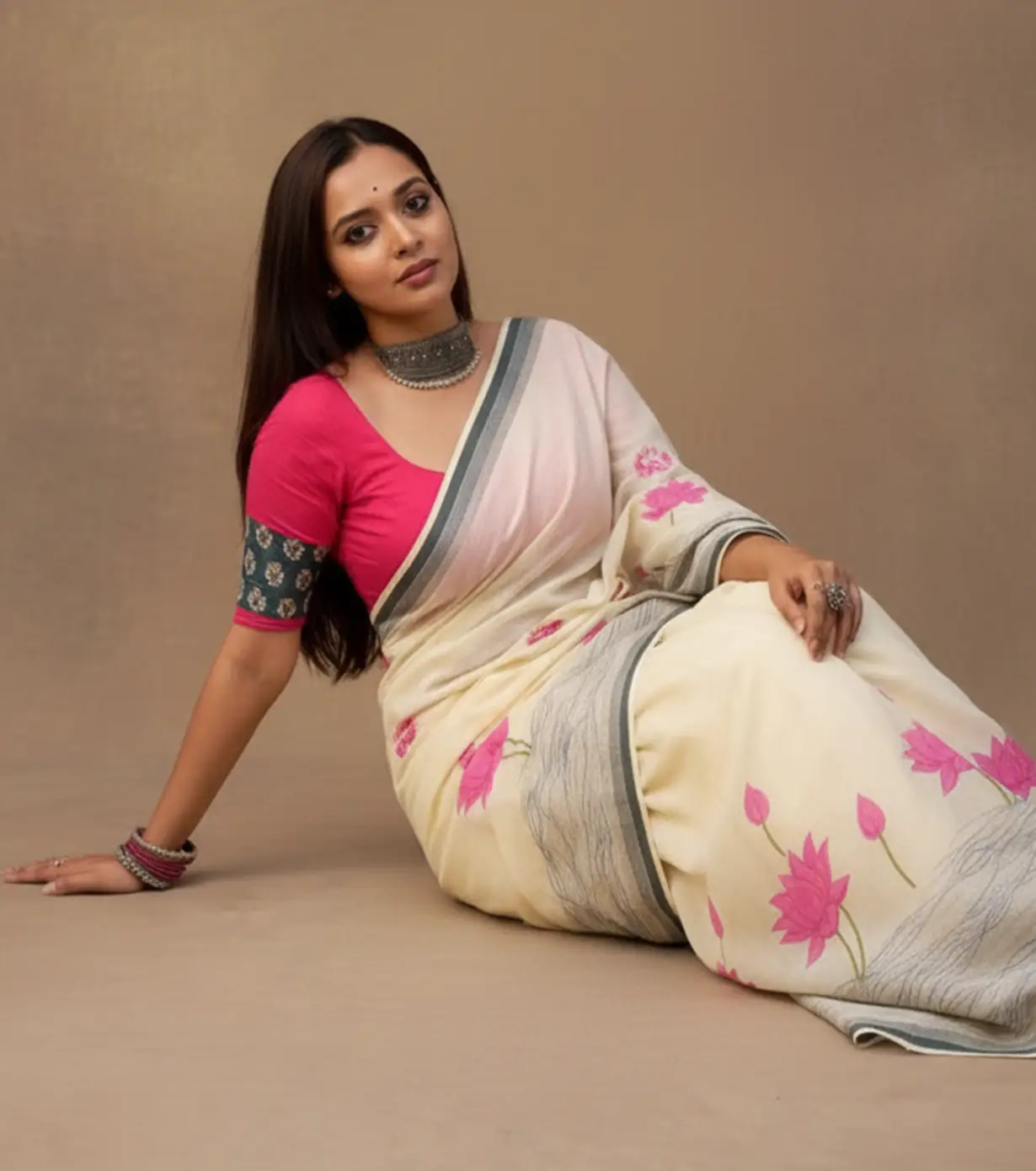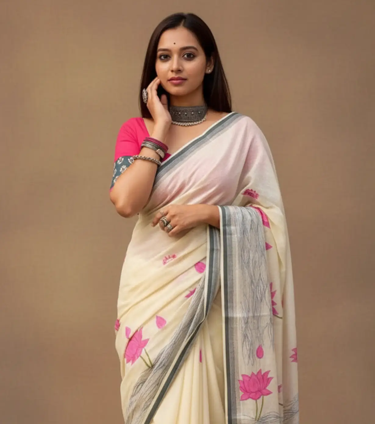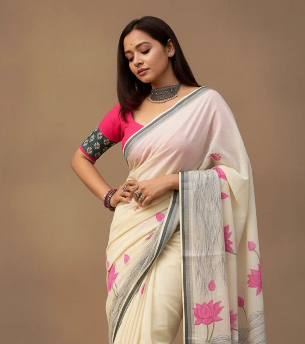 This linen-cotton saree features a heavy digital print, blending breathable comfort with elegant style. Lightweight, versatile, and easy to maintain, it includes a matching blouse piece for effortless everyday wear.